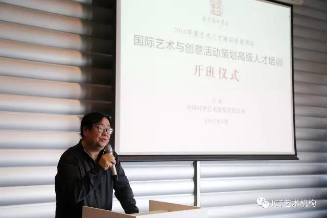 本項(xiàng)目是國(guó)家藝術(shù)基金2016年度藝術(shù)人才培訓(xùn)資助項(xiàng)目,培訓(xùn)將通過(guò)專題授課、交流參訪、項(xiàng)目實(shí)訓(xùn)、講座交流等形式,從理論到實(shí)踐層面為學(xué)員提供學(xué)習(xí)歷練的高端平臺(tái)和國(guó)際合作機(jī)遇。國(guó)家藝術(shù)基金管理中心主任韓子勇,中國(guó)對(duì)外文化集團(tuán)副總經(jīng)理張樹新,中國(guó)對(duì)外藝術(shù)展覽有限公司副總經(jīng)理馬瑞青,30名來(lái)自全國(guó)各地學(xué)員和多家媒體記者參加了開班儀式。