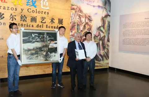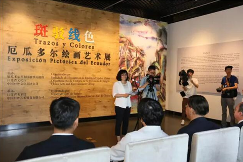 由厄瓜多爾駐華大使館、江蘇省文化廳、中國對外文化集團公司主辦,江蘇省美術館、中國對外藝術展覽有限公司承辦的《斑駁線色—厄瓜多爾繪畫藝術展》于2017年5月18日在江蘇省美術館陳列館隆重開幕。