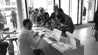 布魯塞爾國家劇院大廳,網(wǎng)上訂票觀眾在取票。