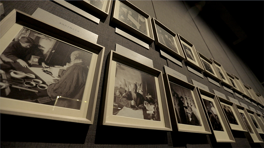 在展覽的空間布局方面,展覽設(shè)置了作品展示空間、影像觀摩空間、畫室模擬空間三個(gè)主體空間。以印有齊白石印章的紗幔做分割,營造了層次分明、錯(cuò)落有致的精致空間感,致力于形成一種經(jīng)常讓人眼前一亮、別有洞天的參觀體驗(yàn)。