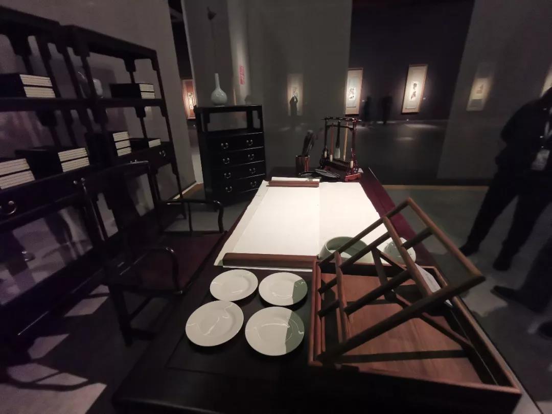 尤其值得一提的是,為了讓觀眾產(chǎn)生近似于身臨其境的現(xiàn)場(chǎng)感,展覽專門在展廳的中央設(shè)計(jì)、搭建了畫室模擬空間。天地儒風(fēng)公司無償贊助使用了價(jià)值不菲的古典家具。模擬一種與展覽整體氛圍相符合的創(chuàng)作場(chǎng)景,增強(qiáng)展覽的趣味性,吸引觀眾更深入的探索大師的藝術(shù)世界。