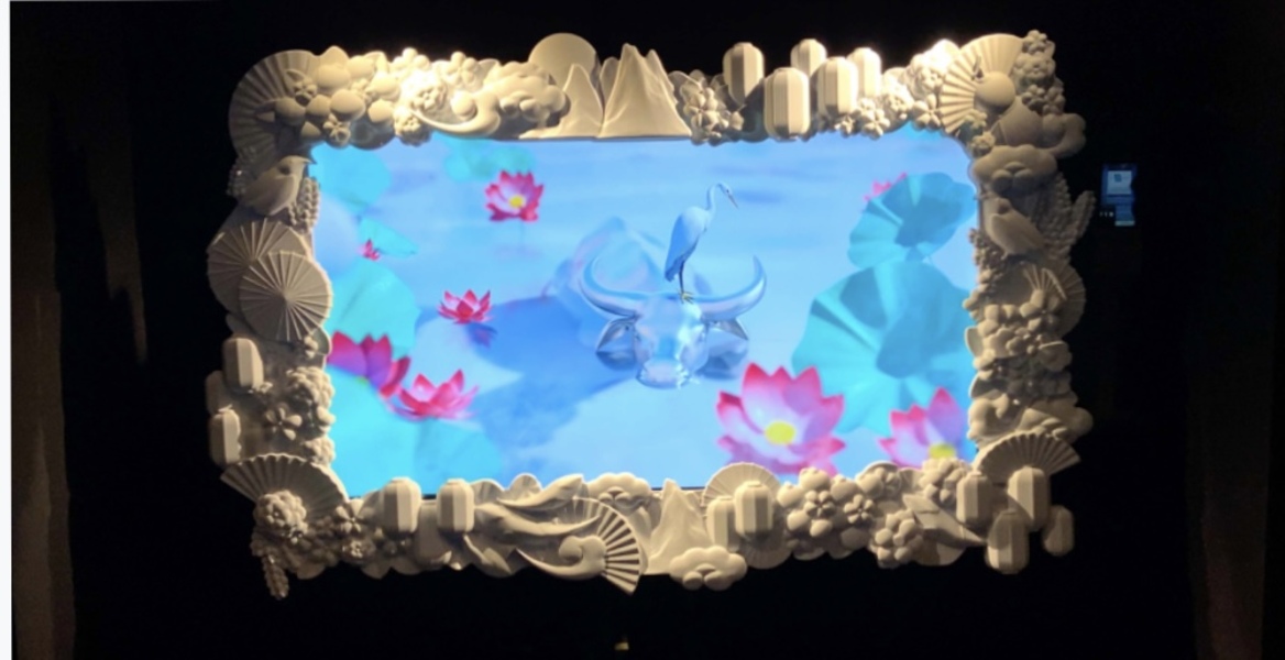 2020年,全世界經歷了各種動蕩與混亂,本屆櫥窗展以“牛轉乾坤”為主題制作了三段3D動畫短片,屏幕外鑲嵌有華美的畫框,置于三扇櫥窗中。動畫片通過“時光隧道”的視覺形式分別表現“春回大地”“風調雨順”和“五谷豐登”3個故事,體現時光倒流、回歸常態的設計概念,寄托了期盼新的一年風調雨順、人壽年豐等美好的愿景。第四扇櫥窗放置了櫥窗展的理念介紹,為觀眾作以詳細的說明。阿鯤工作室為本次展覽提供了音樂支持。